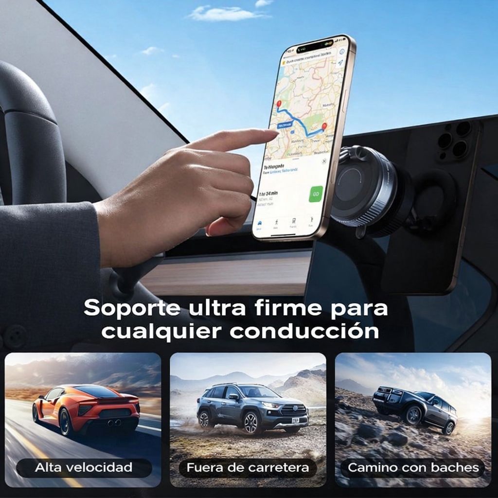 Magnetismo de Alta Potencia: Equipado con imanes de neodimio reforzados que garantizan que tu smartphone se mantenga firme, incluso en caminos irregulares o baches pronunciados.